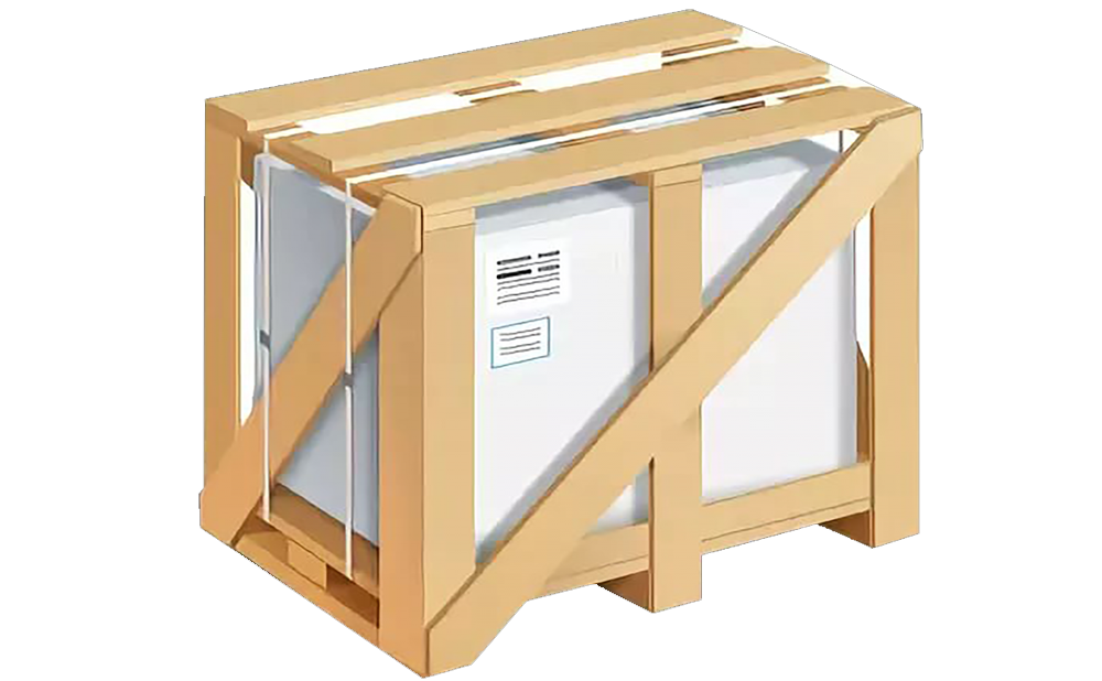 The packaging is made of 3-5 layers of corrugated cardboard, a wooden frame, or OSB panels.