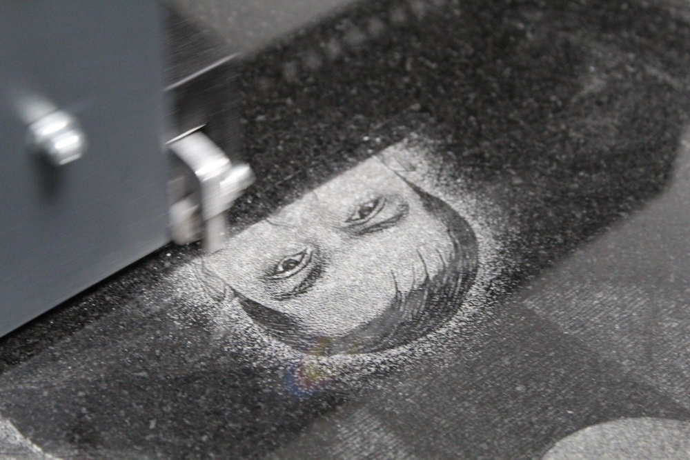 Master Stone impact engraving printing machine from the company Mprint Printers, this is an innovative printer for obtaining images, portraits , patterns and text on stone, glass and other similar materials.